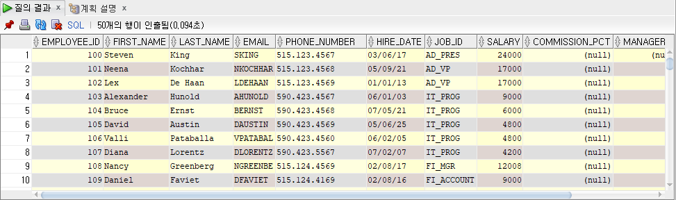 결과 창에 출력된 데이터가 많을 시 결과를 확인하기 어려운데, 이때 색상을 번갈아가게 표시하면 보다 쉽게 확인할 수 있다.