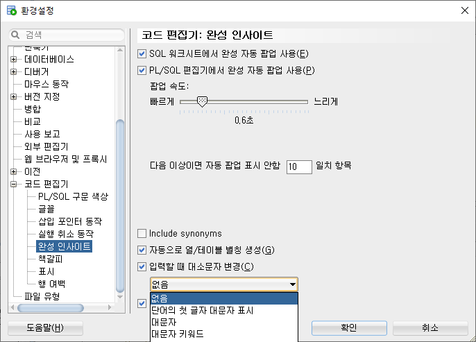 키워드/식별자를 자동으로 대소문자로 만들어준다.(개인적으로 오히려 번거롭다고 생각함)