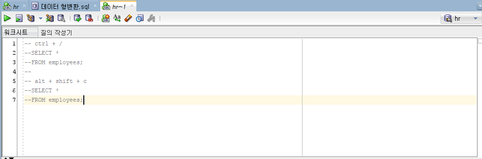 원하는 문을 블록 처리한 후 'ctrl + /' 클릭