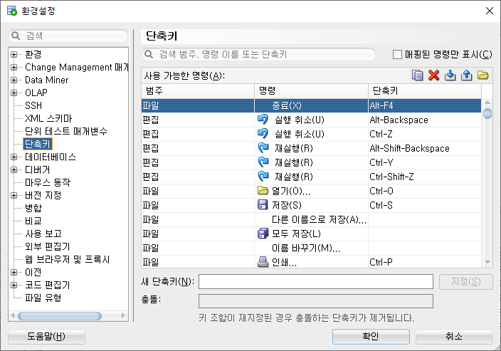 기호에 맞는 새로운 단축키를 지정할 수 있음