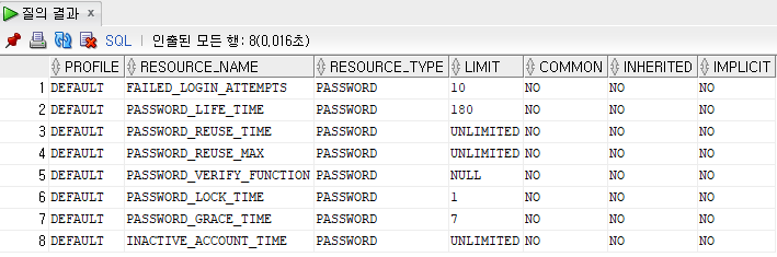PASSWORD_VERIFY_FUNCTION : 패스워드를 할당하기 전 복잡성 검사를 수행할 PL/SQL 함수