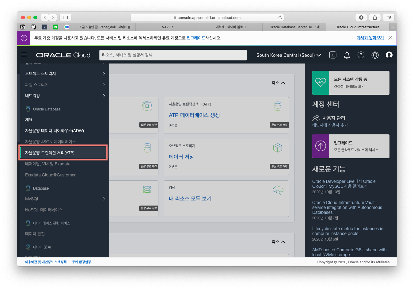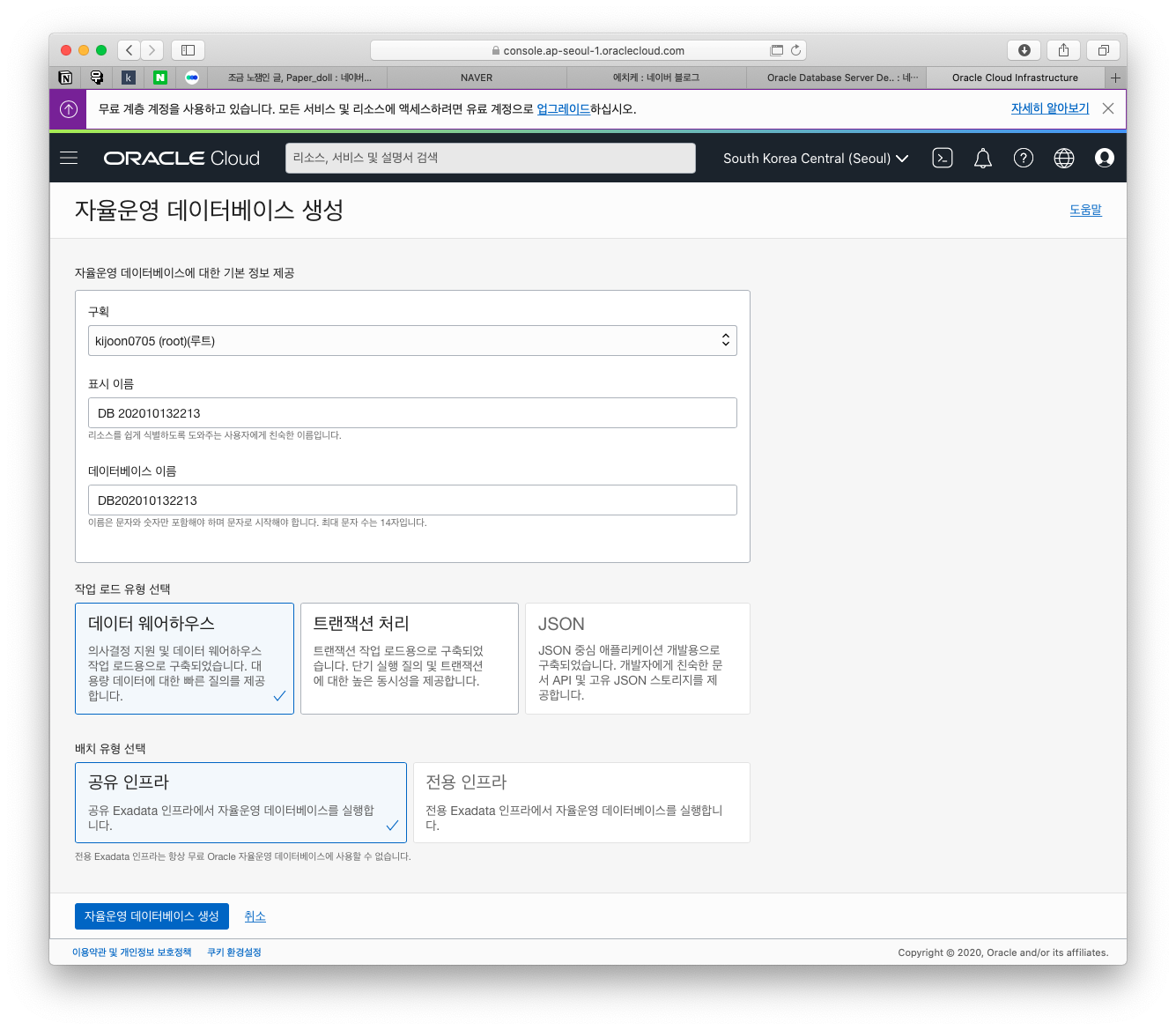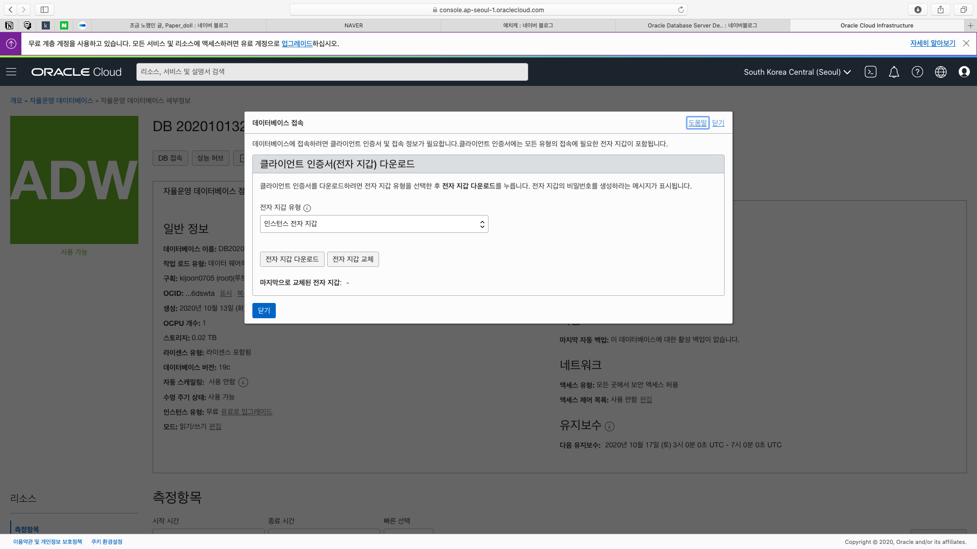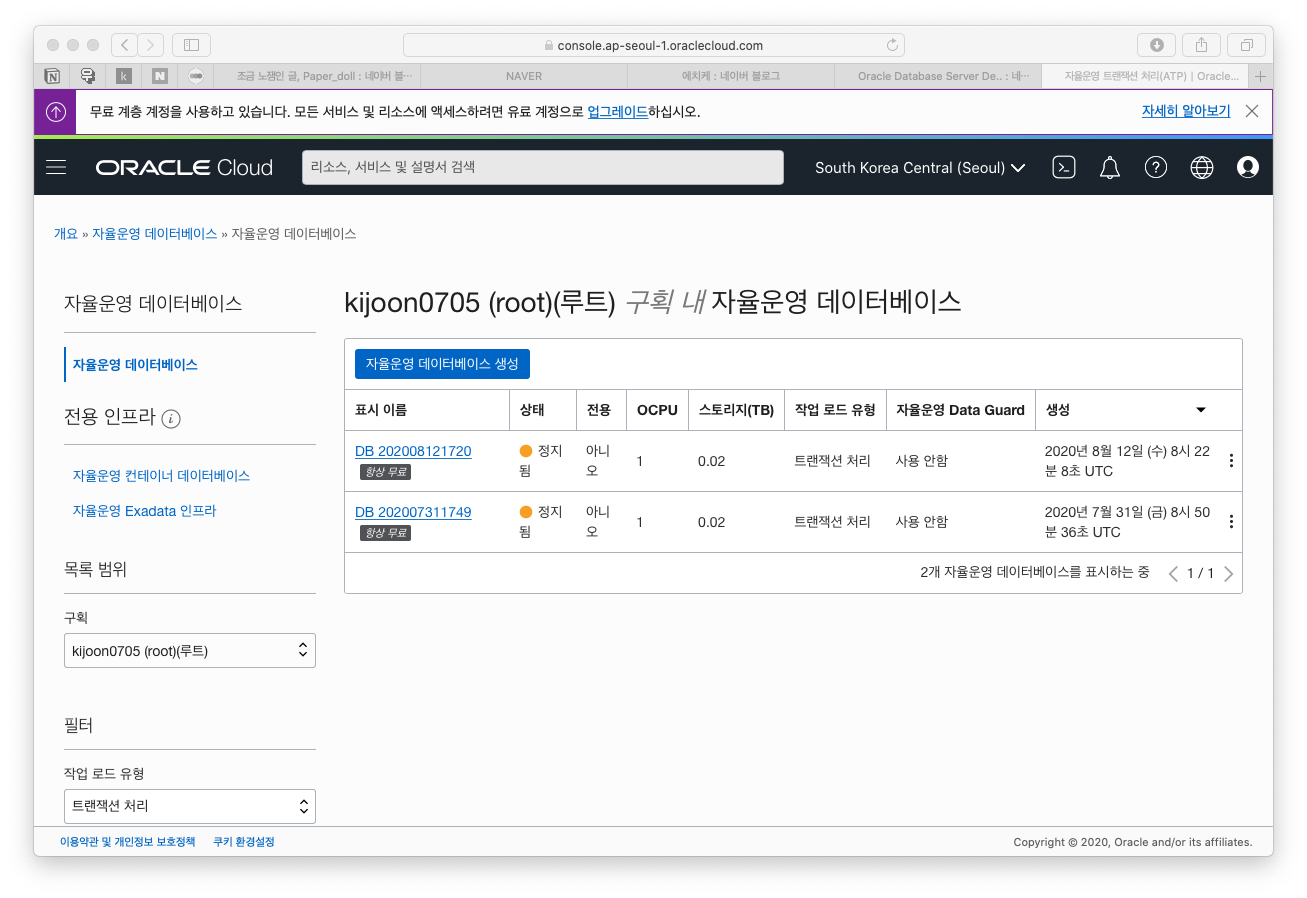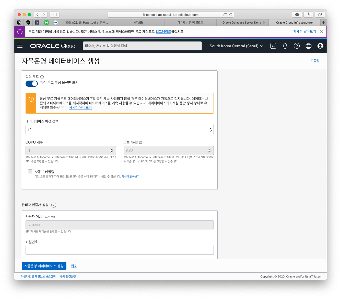 오라클 자율운영 데이터베이스(APT DB) 생성