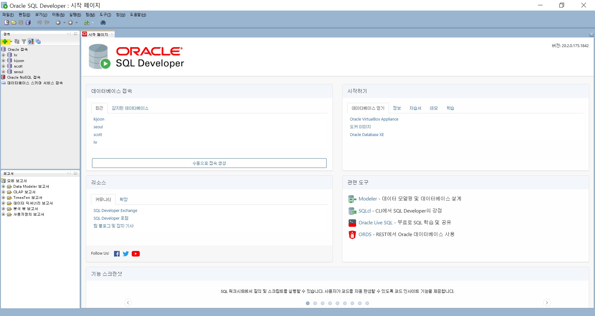 나의 경우 기존에 설치된 SQL*Developer는 4. 대 버젼이었고 새롭게 설치한 SQL*Developer는 20.2.04 버젼이다.