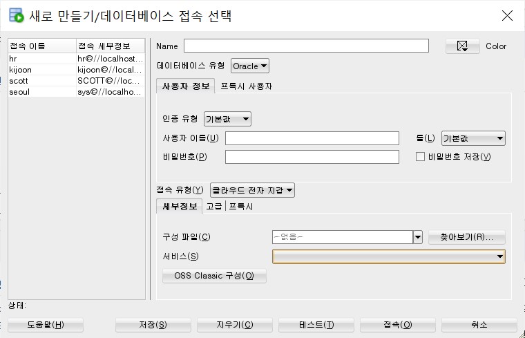 01. SQL*Developer에 들어가 새로운 접속을 위해 접속